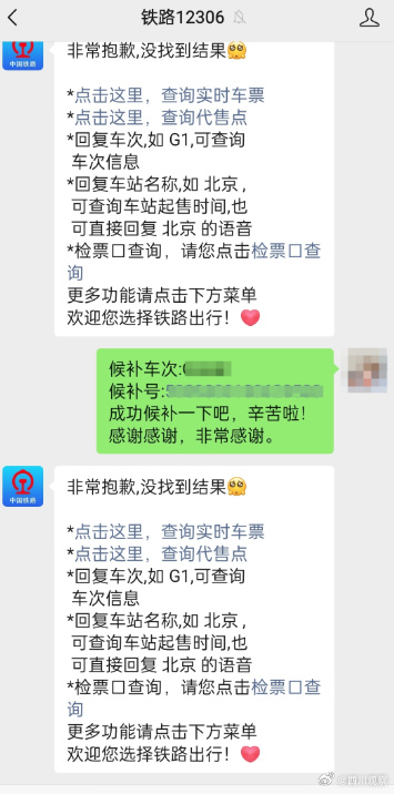 原标题:给12306微信公众号留言“许愿”就能成功候补车票?