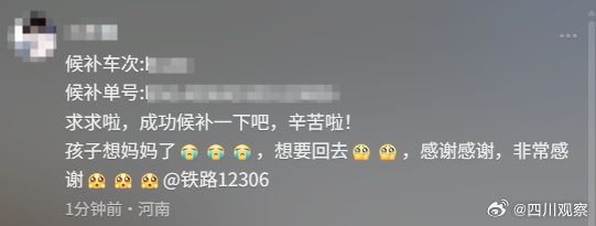 “我爱你,许愿候补成功”“候补车次***,候补单号***,帮我兑现一下吧”“候补好多车次了,求求你给我兑现了吧。”近日,有部分网友表示通过对12306微信公众号发送候补车票信息,据说能成功买到车票。对此,12306官方客服曾回应过:留言补票成功纯属巧合。即使留言,12306人工也无法干预补票结果,一切是系统自动候补的结果。建议采用正确候补方式,以免错过购票时机。