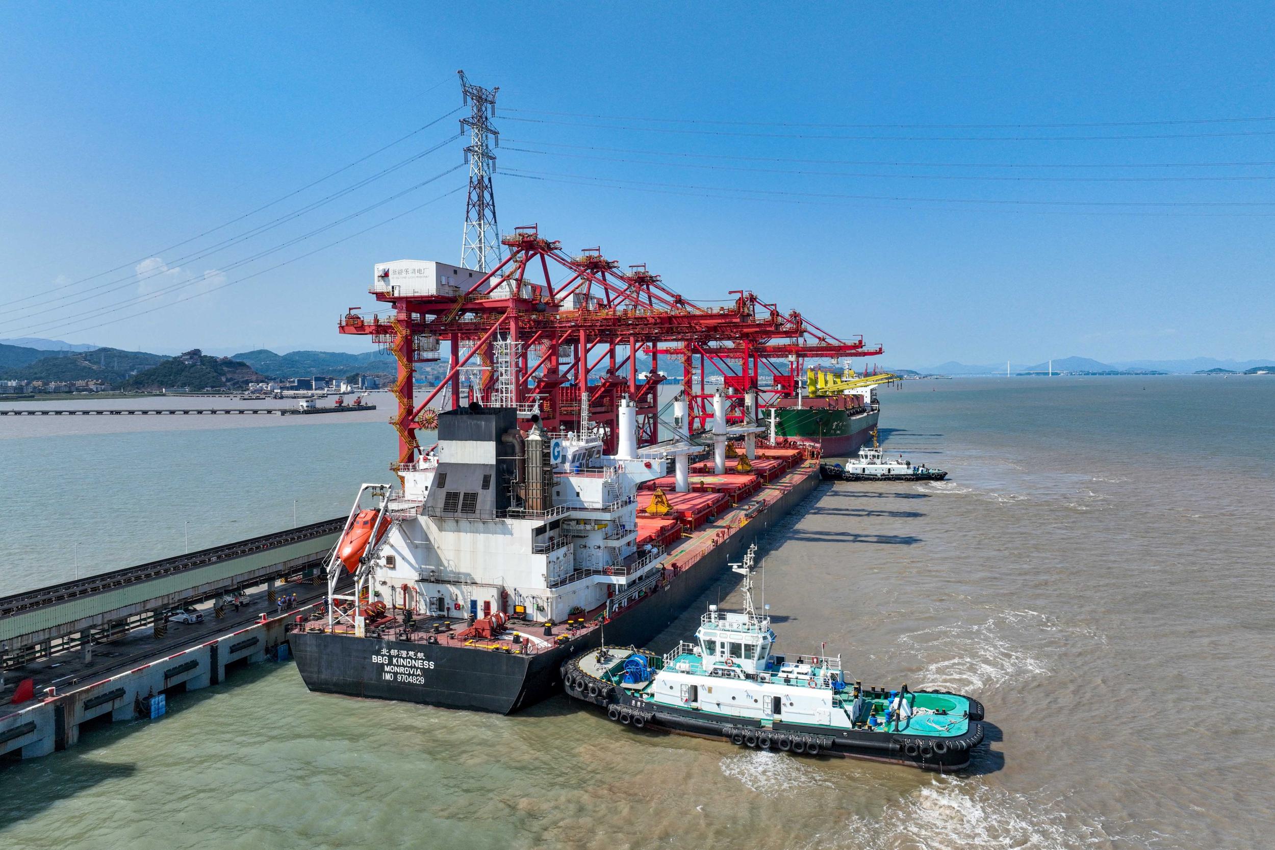 浙能乐清电厂三期码头装卸忙。供图:乐清市南岳镇人民政府