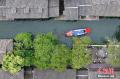 4月26日,江苏苏州,游船在周庄古镇里的河中划过。周庄原名贞丰里,以“青砖白墙黛瓦,小桥流水人家”的风光著称,享有“中国第一水乡”美誉。(无人机照片)中新社记者 泱波 摄