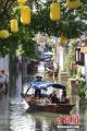 4月26日,江苏苏州,游客在周庄古镇内参观。周庄原名贞丰里,以“青砖白墙黛瓦,小桥流水人家”的风光著称,享有“中国第一水乡”美誉。中新社记者 泱波 摄