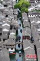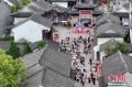 4月26日,江苏苏州,游客在周庄古镇内参观。周庄原名贞丰里,以“青砖白墙黛瓦,小桥流水人家”的风光著称,享有“中国第一水乡”美誉。(无人机照片)中新社记者 泱波 摄