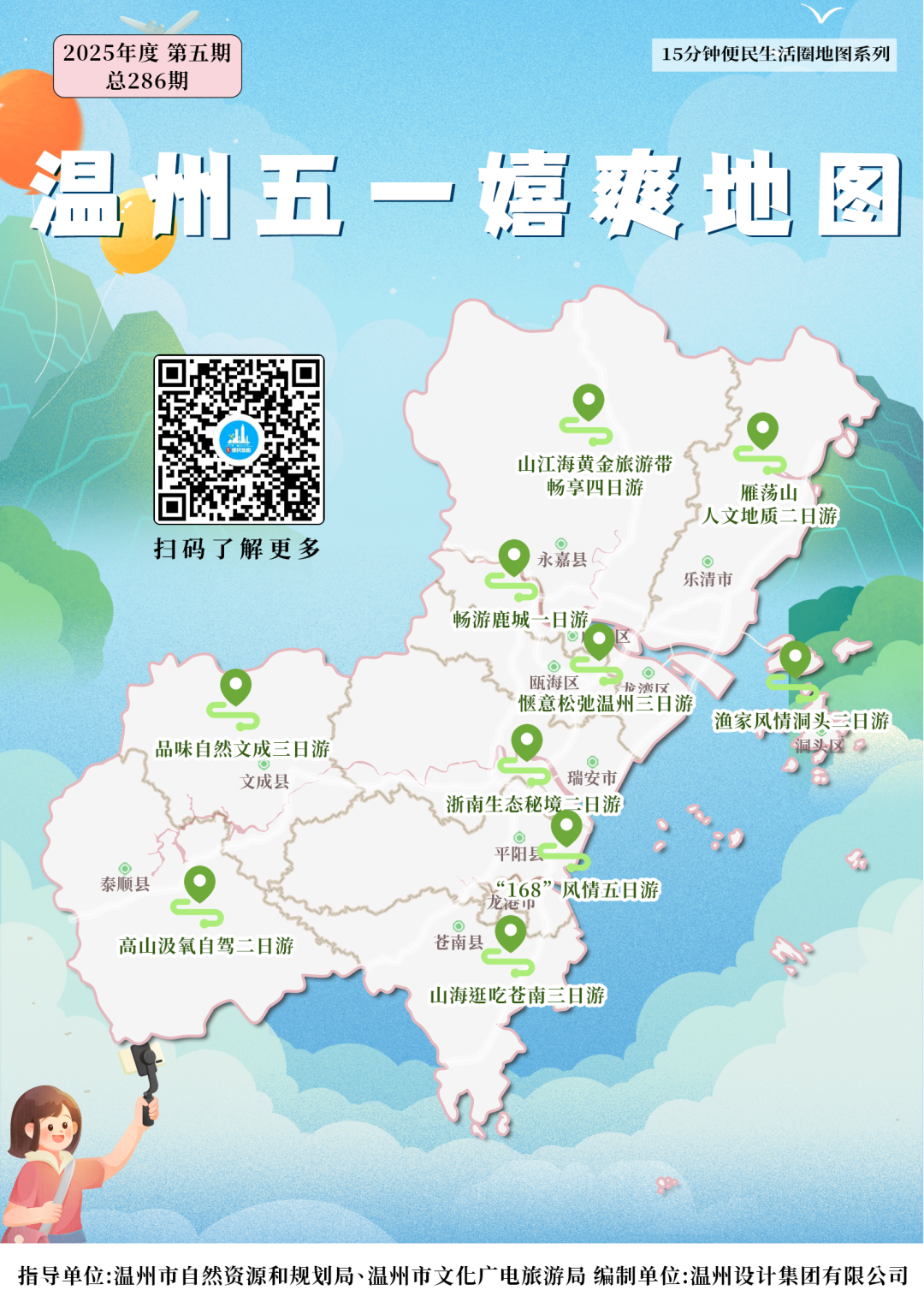 温州网讯 2025年4月28日,在温州市自然资源和规划局、温州市文化广电旅游局的联合指导下,由温州设计集团有限公司精心编制的《温州五一嬉爽地图》正式上线,为游客五一假期畅游温州提供了便捷、全面的旅游指南,一键解锁懒人玩法,助力游客畅享欢乐假期。