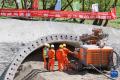 4月29日,工作人员在吉尔吉斯斯坦贾拉拉巴德地区中吉乌铁路重点控制性工程开工现场工作。当日,中吉乌铁路吉尔吉斯斯坦境内段重点控制性工程费尔干纳山、纳伦1号、科什特伯3座隧道开工建设,标志着中吉乌铁路项目正线工程进入实质性施工阶段。新华社发(罗曼摄)