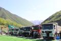 4月29日,工程车辆停在吉尔吉斯斯坦贾拉拉巴德地区中吉乌铁路重点控制性工程开工现场附近。