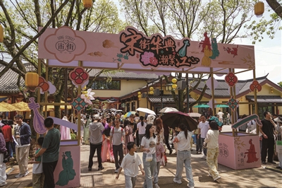 昨日,鹿城区江心屿景区内,游客在热烈的节日氛围中穿梭游览。苏巧将 摄