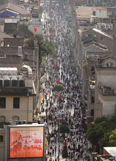 昨日,鹿城区五马历史文化街区热闹非凡,客流量超20万人次。苏巧将 郑鹏 晴雯 摄