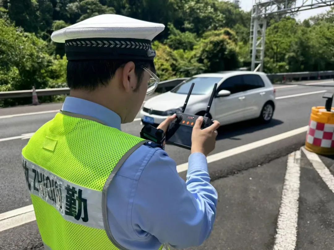 五一假期首日,诸永高速迎来车流高峰,车流量较去年同期增长20%。为应对高流量路况,高速交警增派警力,并利用警力机器人实现高效调度作业,确保路面畅通、司乘人员行车安全。