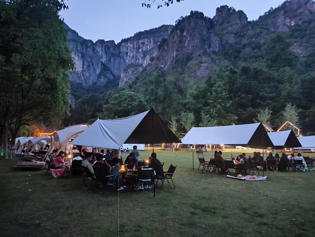 在大若岩百丈瀑景区,篝火乐队大狂欢活动同样热闹非凡,游客不仅可以在篝火旁参加热舞派对,尽情释放自己的热情,还可以在趣味萌宠园与可爱的小动物们互动体验,感受动物带来的欢乐;草坪露营让游客亲近大自然,在星空下享受宁静的夜晚;露天电影则为游客带来了怀旧的观影体验,大家围坐在一起,共同欣赏精彩的影片。