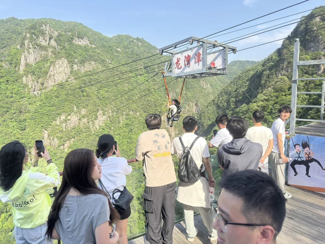 昨天,穿全套汉服免费游龙潭活动吸引一批批游客前来古风打卡,玻璃栈道凌波微步、龙潭瀑布下执扇抚琴……游客纷纷留念打卡。期间,龙湾潭景区为年轻游客量身定制了尖叫狂欢活动,推出魔鬼秋千、脱离地球、飞天威亚、人体弹弓、步步惊心等众多刺激项目,让游客在释放压力的同时感受肾上腺素飙升的快感。