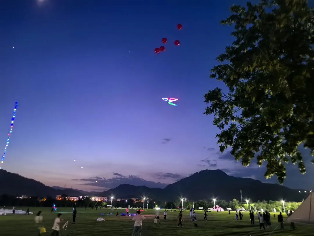 在楠溪江滩地音乐公园的风筝艺术生活节,现场设置了风筝展示、风筝大赛、文艺表演以及主题市集等多个项目。现场还设有露营区域,分为漫简营地和自助营地,满足游客不同的露营需求。市集区涵盖吃、喝、玩、乐、赏,有风筝文创、非遗体验、科普展示以及特色美食。游玩区设置了飞花镖、投壶、蹴鞠、射箭等游戏项目,让游客尽情体验传统游戏的乐趣。