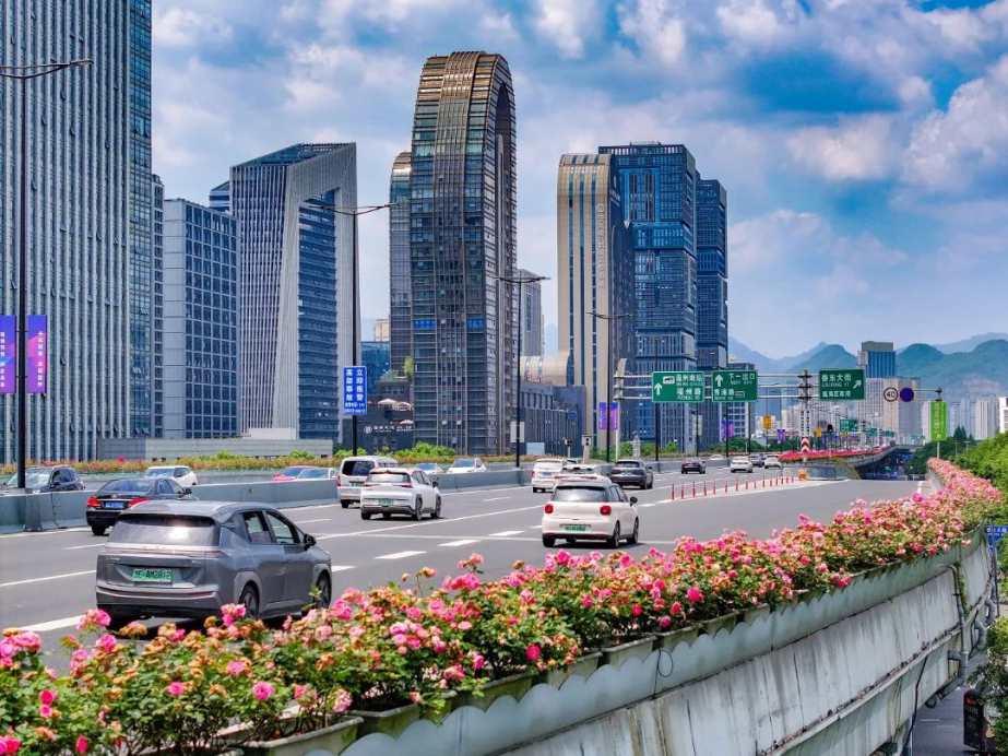 瓯海大道沿线7000多盆三角梅、18000盆左右月季热烈绽放,总面积1万多平方米的花海,将道路装点得如梦似幻。