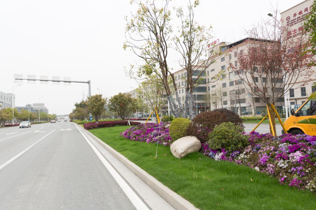 宁波路全长约7公里,彩化约3500平方米,采用“中央透景、两侧馥郁”设计,精选亮色花卉,打造层次丰富、色彩鲜明的道路景观。