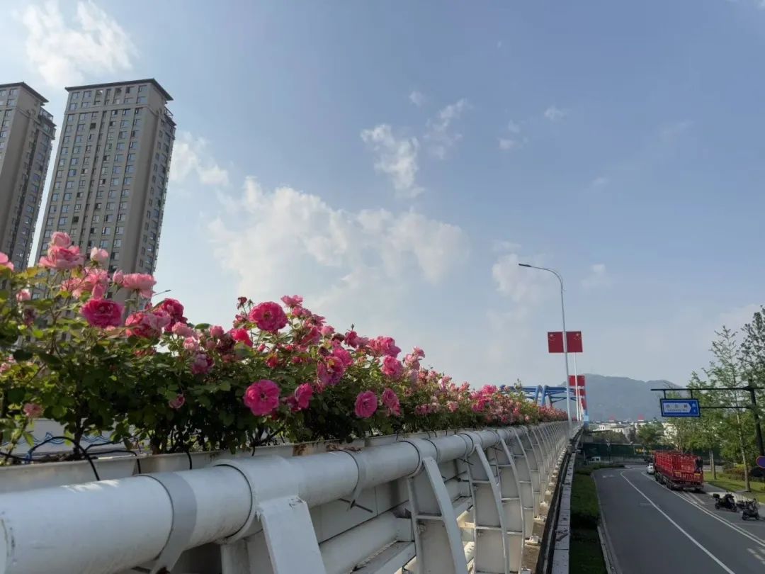 月季花作为龙港大桥的核心绿化景观,被赋予了独特的地位和精心的呵护。不同品种的月季分布在大桥的各个重要节点,它们簇拥成团,为大桥带来了持久的生机与活力。