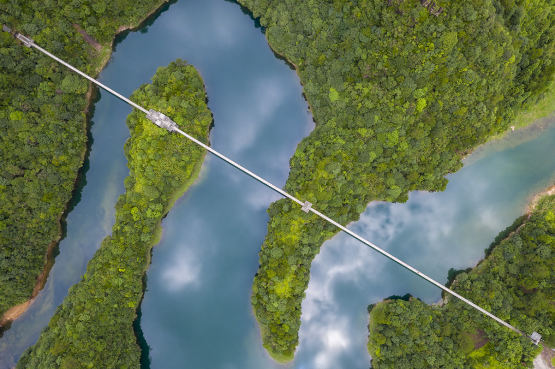 瑶湖,一座美丽的山中平湖,宛如一块巨大的翡翠碧玉镶嵌在青山环抱中。