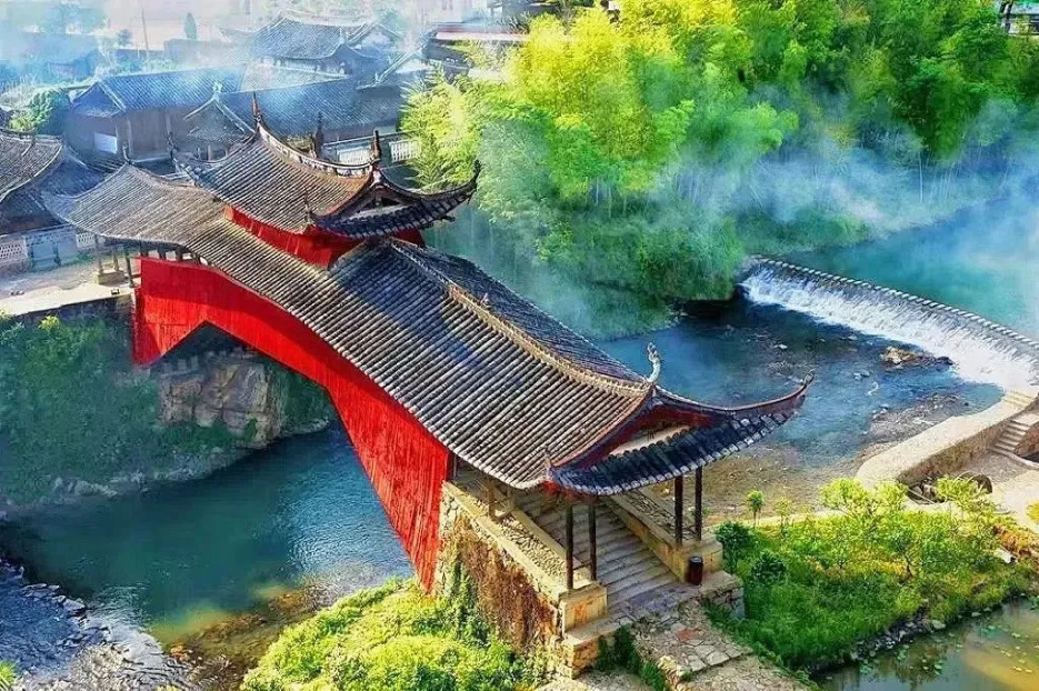 走在廊桥旁的碇步上,听潺潺溪水唱着春天的歌,木桥、石桥,百年来在此守护一方,与周边山、水、民居等融合一片,两棵千年古树在侧,这一切构成一幅美丽的画卷。