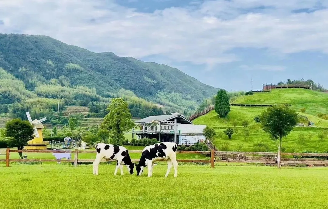 云岚牧场有多种亲子体验项目,可以亲近奶牛、喂喂草、打卡滑草、做牛轧糖、采摘蔬果等。
