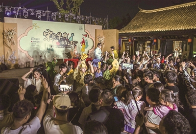 昨天,江心屿景区以特色夜间演艺为引擎,吸引众多游客沉浸式感受鹿城文旅魅力。苏巧将 摄