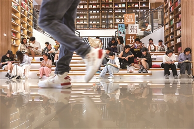 昨天,在温州书城内,市民享受阅读时光。苏巧将 摄