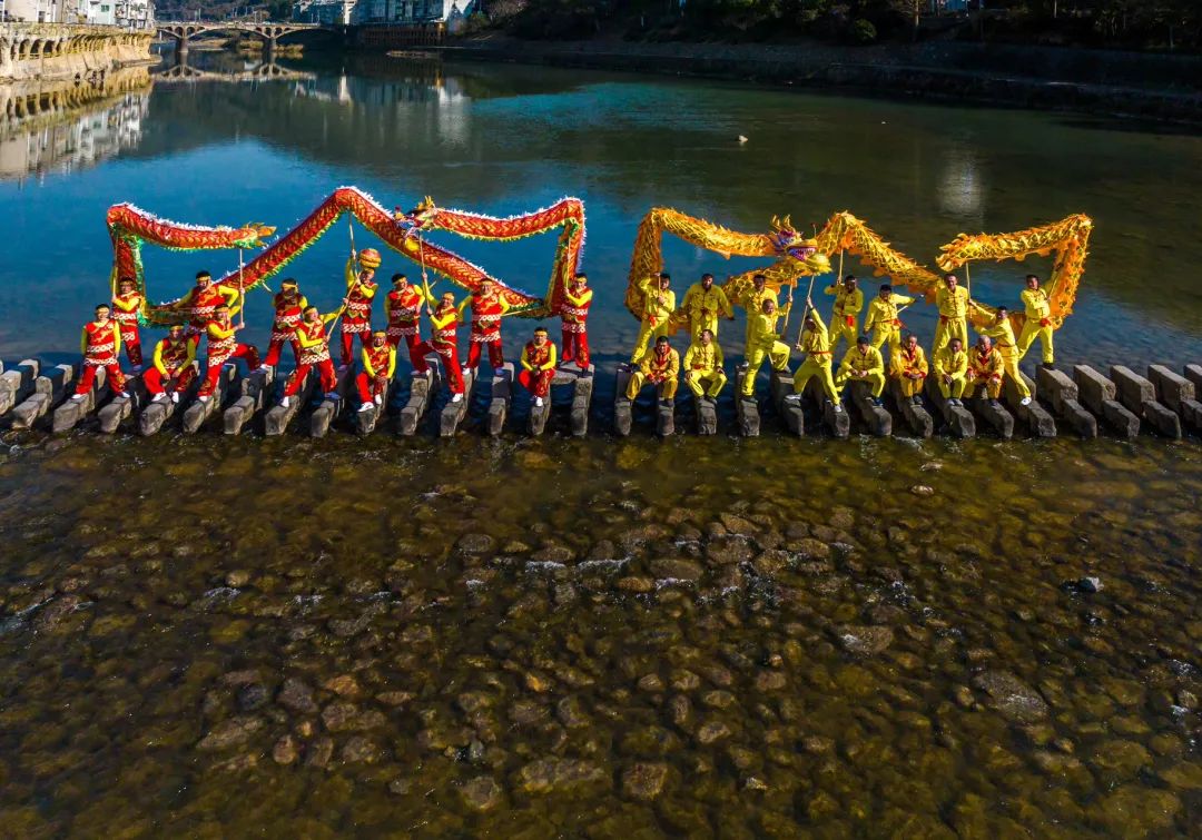 碇步龙又称龙舞,因在溪水中的石碇步上进行表演而得名。在林晨阳的家乡仕阳镇,有一条建于乾隆年间的“仕水碇步”,巧合的是,这条碇步也是2023年央视春晚舞蹈《碇步桥》的灵感取材地。