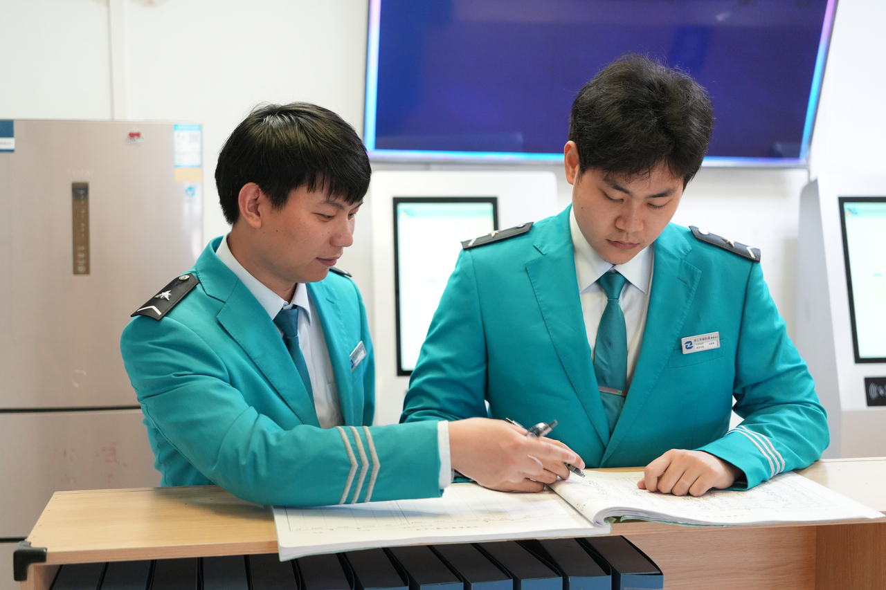“这次制动力度像羽毛落地般轻柔!” 徐宇锋轻叩舱壁三下,吴俊豪迅速在笔记本上记录下 “制动梯度-2%”。而当角色互换,驾驶舱内则会响起 “急停像浪头拍岸般猛烈” 的警示。直到毕业离校的前夜,他们合订的笔记本里,还记录着厚厚的笔记。