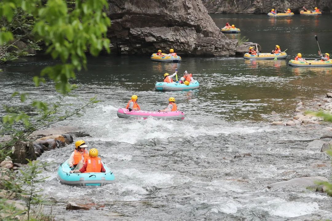 面对激增的客流,景区安全运营成重中之重。为确保游客的安全与游玩体验,石桅岩漂流景区对早就对河道进行安全评估,在保留自然风貌的同时,对险滩、暗礁等隐患点实施人工干预。同时,在“五一”期间加强安全保障措施,对漂流设备进行全面检查和维护,优化游客服务流程,水流湍急处设有专业护漂员守护,平缓区可全家打水仗、赏景聊天,橡皮艇标配安全扶手和坐垫,为游客提供舒适的游玩环境。