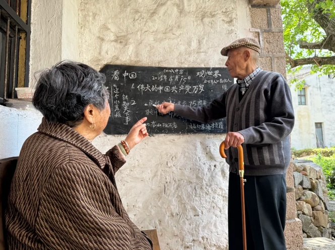 乡间走廊里的“世界之窗” 瑞安98岁党员35年坚守“新闻小黑板”