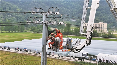 救援人员上去后发现,倒挂着的男子遭遇过电击,神志处在半昏迷状态,左手臂严重烧伤并已出现脱皮,衣服也已破损,身边还挂着一个包。万幸的是,他在摔落过程中被电线杆检修梯勾住裤子,这才没有坠落。