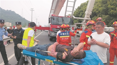 “当时我们赶到现场时,电力部门的人员已到场,并已将该电线杆断电。根据目测,倒挂在上面的男子离地约15米,我们迅速组织三人救援小组使用登高救援平台上去救人。”永嘉县消防救援大队瓯北消防救援站一名消防救援人员介绍道。