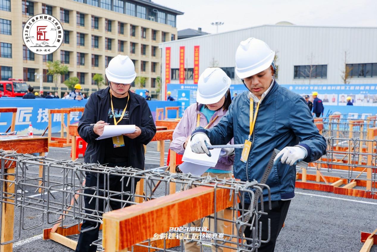 贺刚作为裁判员参加2023浙江省乡村建设工匠技能竞赛。受访者供图