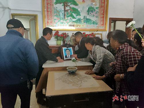 “这是我们60余名师生的心意。”高武的初中同学兼同乡高碧玉专程前来悼念,将筹集的爱心善款交予高武妻子。