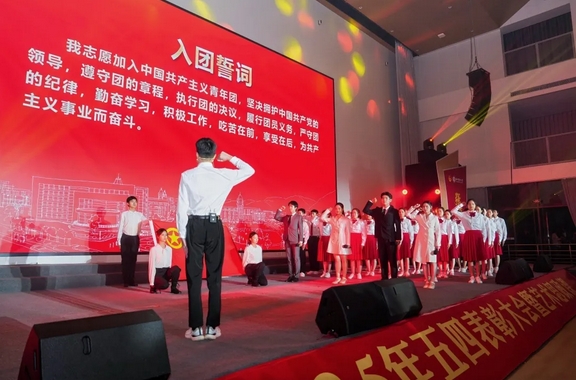 当《青春誓言》激昂的朗诵声在礼堂回荡,全体团员高举右拳重温入团誓词的庄严时刻,这场思政课迎来最高潮。青年学子们以最炽热的情感,生动诠释了新时代青年的信仰之光与使命担当。