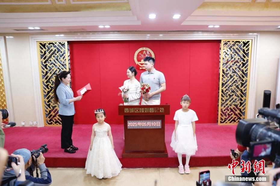 5月10日,北京市西城区婚姻登记处迎来全市首对婚姻登记“全国通办”新人。当日,修订后的《婚姻登记条例》正式施行,在全国范围内全面实施内地居民婚姻登记“全国通办”服务。据悉,当天北京全市婚姻登记预约1700余对,其中涉及“全国通办”业务的约900对,较以往周末预约量有较大提升。中新社记者 韩海丹 摄