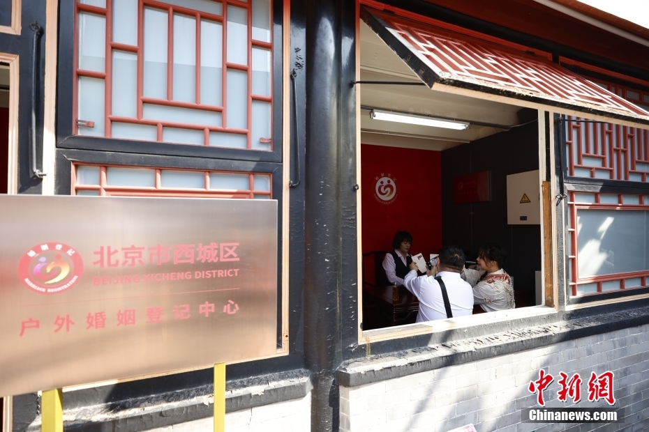 5月10日,一对新人在大栅栏护国观音寺北京首个户外婚姻登记中心登记。当日,修订后的《婚姻登记条例》正式施行,在全国范围内全面实施内地居民婚姻登记“全国通办”服务。据悉,当天北京全市婚姻登记预约1700余对,其中涉及“全国通办”业务的约900对,较以往周末预约量有较大提升。
