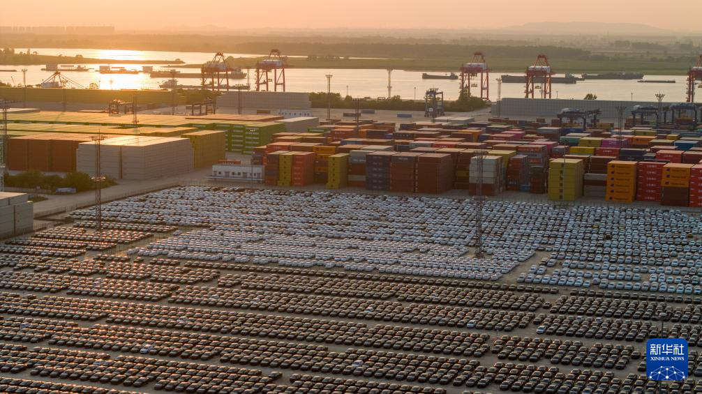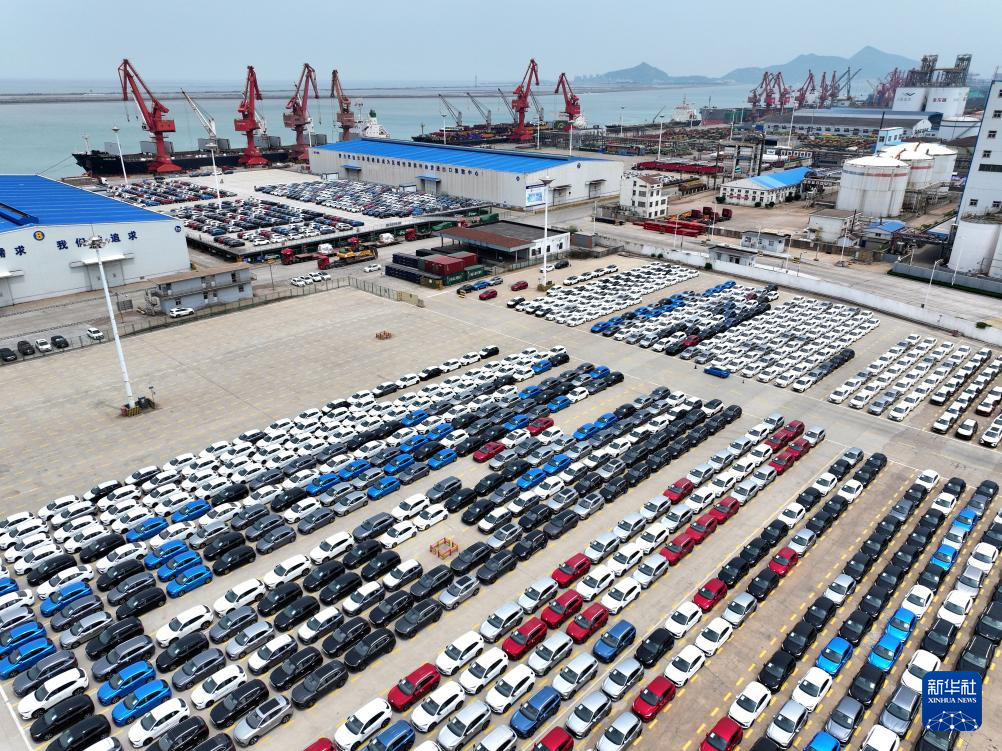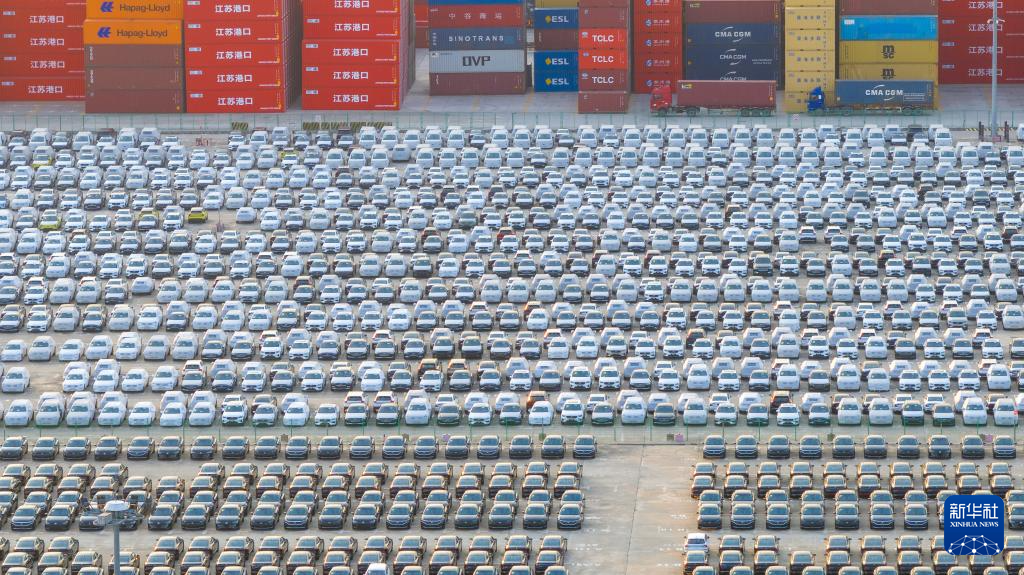 这是5月12日在江苏南京龙潭港集装箱码头拍摄的准备装船出口的汽车(无人机照片)。据5月12日中国汽车工业协会信息,2025年1至4月,我国汽车产销量分别为1017.5万辆和1006万辆,同比分别增长12.9%和10.8%。前4个月产销量首次突破千万辆,彰显汽车产业活力。新华社发(杨素平摄)