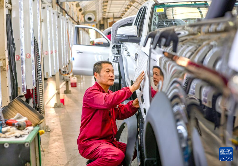 这是5月13日拍摄的江苏省江都高新技术产业开发区某汽车生产企业生产线。