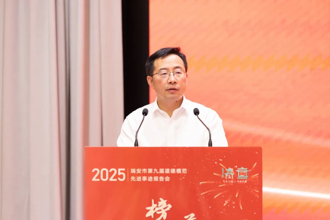 要凝聚道德力量,砥砺奋进精神,合力筑牢幸福瑞安的文明基石。围绕中心、服务大局是道德建设的内在要求,希望广大干部群众以模范为榜样,弘扬诚信品德、优化营商环境,为瑞安经济稳进提质注入动力;弘扬社会公德、共建文明高地,助力瑞安打造德善之城、文明高地;建强德治阵地、推动基层善治,持续擦亮瑞安“中国最具幸福感城市”的金字招牌。