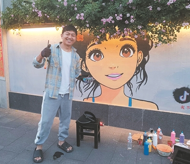 “花间少女”美翻了!他在墙上作画“惊艳”街头