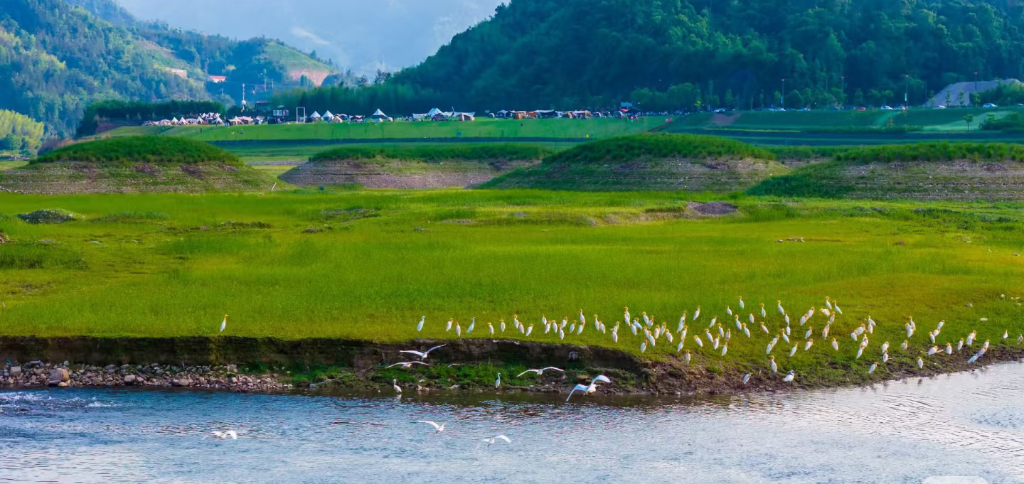 温州网讯 高山蓝莓缀满枝头,山间桐花如雪纷飞,一群群白鹭在草坪上空飞翔……初夏时节,泰顺县司前畲族镇迎来了一年中最富诗意的光景,吸引着游客走进这片“绿野仙境”,体验独特的畲乡风情。