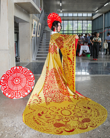 原标题:一把剪刀一张纸变出了一身美丽衣裳!非遗剪纸艺术展震惊温医大留学生