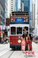 5月18日,香港上环(西港城)电车总站,有“叮叮车”之称的香港电车迎来首批购买周末“叮叮旗袍套票”的乘客。