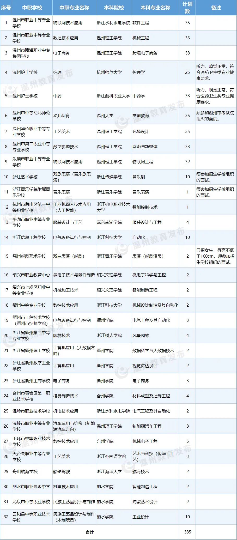 原标题:面向温州招385人,2025年“中本一体化”温州招生计划发布!