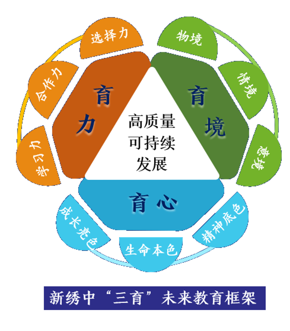 “三育”即育心、育力、育境,通过国家课程、地方课程、校本课程创造学习的物境、情境、意境,在相互交融中形成学习育人、活动育人、文化育人的综合育人价值效应。