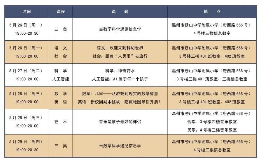 地点:温州市绣山中学附属小学(府西路666号),具体地点见下方表格;
