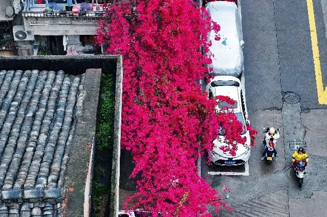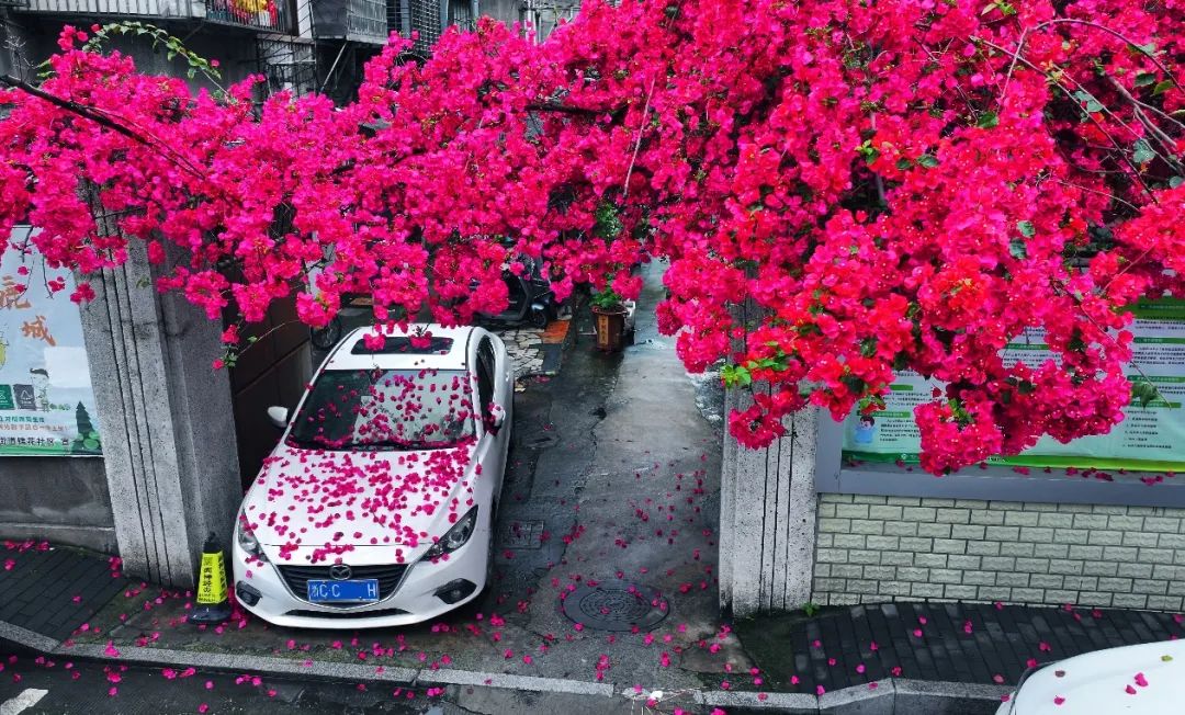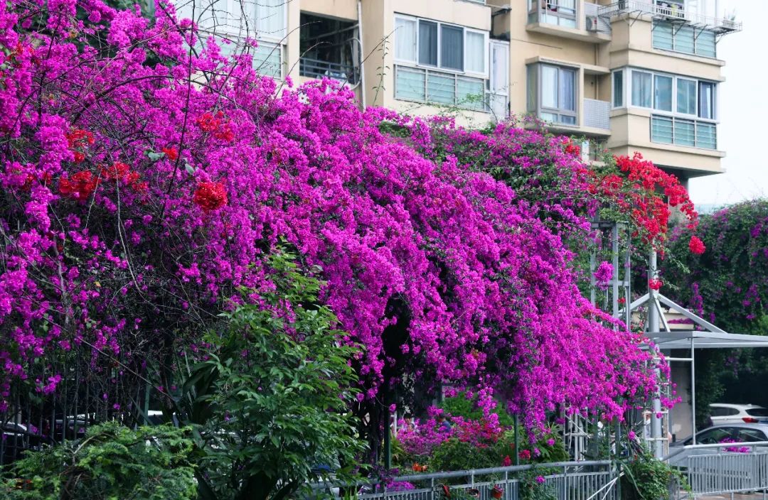 太浪漫了!三角梅花开成瀑 惊艳温州城