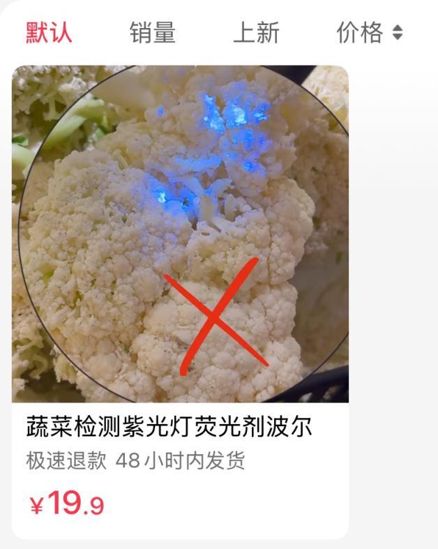 用荧光笔照射蔬菜,用来判断蔬菜是否有农药残留,类似的视频在网上屡见不鲜,标题也都起得煞有介事:“你家买的蔬菜正常吗?一照立马现出原形”“大爷买菜竟用高科技,菜市场摊主集体失眠”……