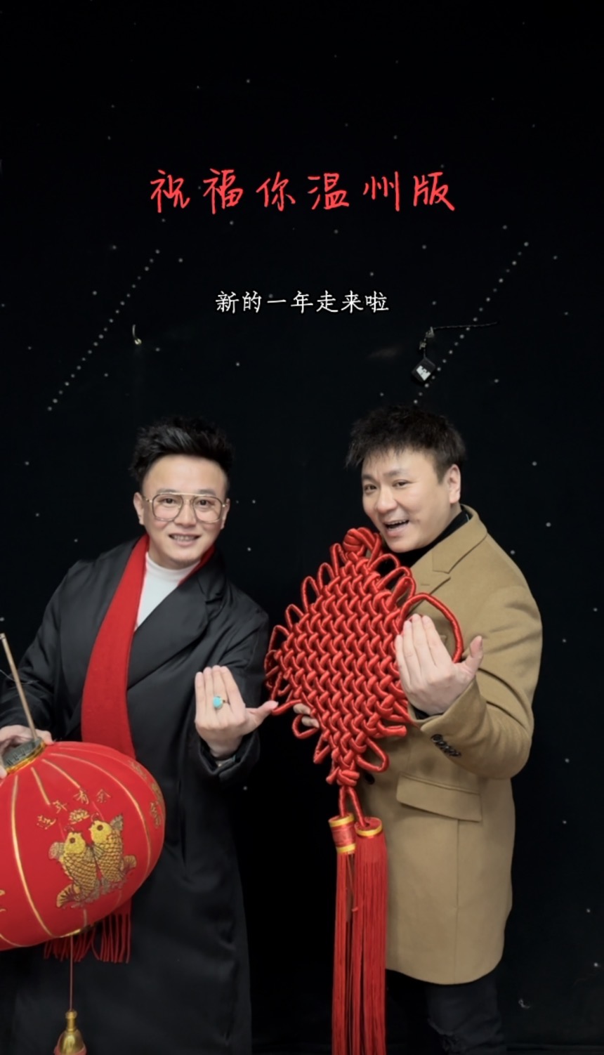 徐杰回忆2023年与大郑老师的合作经历,他们共同将粤语流行歌曲《祝福你》改编为温州方言版。将歌词进行二度创作后,他又与冯一洵合作,录制了演唱视频。“我们合作时,我总要先纠正他的粤语发音。但一开始合唱温州话,便又能迅速达成和谐,展现出浓郁的‘温州味’。”冯一洵坦言。在业余时间,徐杰不断尝试,从发音的准确性到旋律的适配性,面临重重挑战,因为将流行歌曲的歌词用方言表达很容易显得生硬。