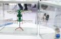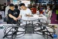 5月23日,万勋科技的工作人员介绍该公司带来的柔韧机器人+无人机行业应用解决方案。