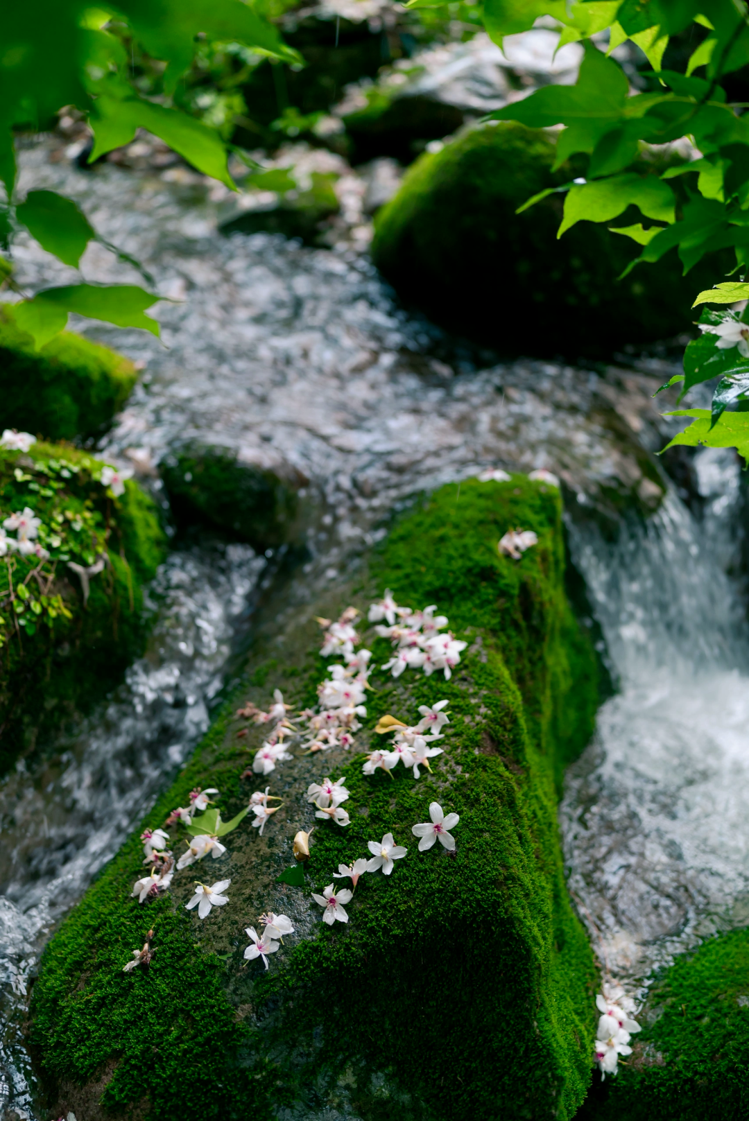 走进桐花谷,高大的油桐树星星点点分布,洁白的花朵一簇簇,挂满枝头。微风拂过,桐花纷纷扬扬地飘落,有的落在山间小径,有的飘入潺潺溪流,随波逐流,激荡出“桐花入水即重生”的奇幻意象。
