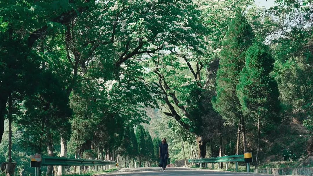 泰顺五号绿道石亭至仙居廊桥路段,堪称桐花的诗意长廊。笔直高大且密集分布的油桐树,沿着公路两旁整齐排列,形成了一条绵延数公里的桐花道。每年五月,微风吹过,桐花簌簌飘落,大朵的鲜花掉落地面后依旧纯白完整,仿佛是大自然精心铺就的花毯。